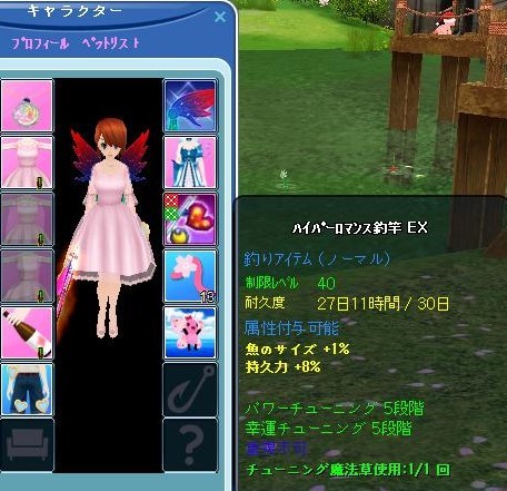 40竿を作って初めてのパイパー化の属性は「サイズ+1%、持久力+8%」で不満足でしたので、