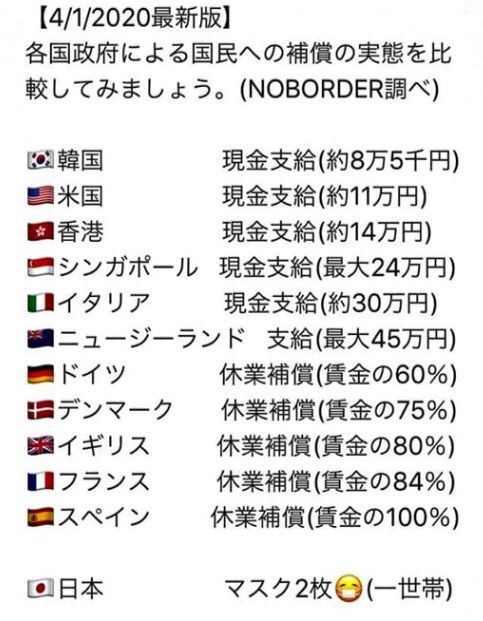 コロナですごい状況なのにマスク二枚しかもらえないけど