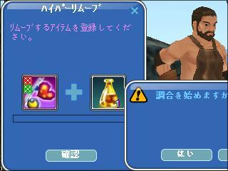 ② 「リムーブ」を選んで、竿とリムーバーを窓に入れて・・・調合をすると、属性の消えた「ロマンス釣竿 EX 」に戻ります。