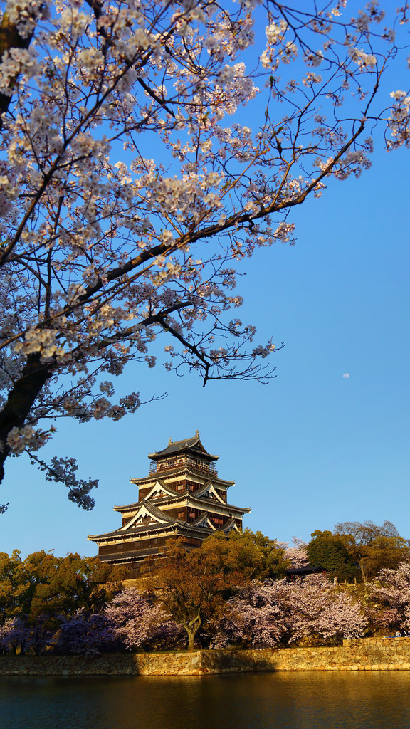 お堀の手前にあんまちょうどいい枝振りの木がないんだよなぁ。