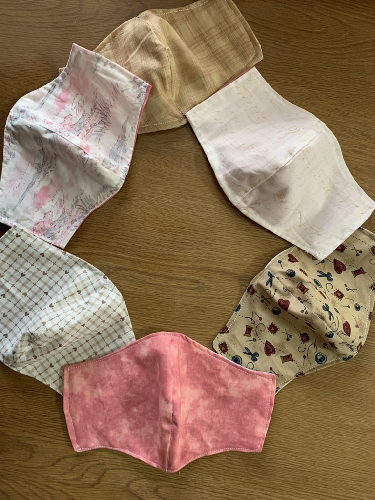 今日は朝から家族3人分のマスクを縫ってみた~。
