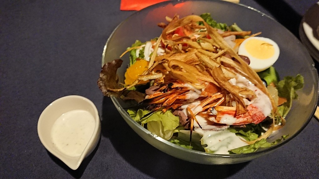 殻付きのエビが乗ってるサラダなんて初めて見たかもーー
