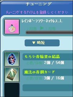 そうすると、可能な属性が選択できますので・・・私は「レインボーフラワーネックレス_L」に「経験値」と「時短」を付けてみました。