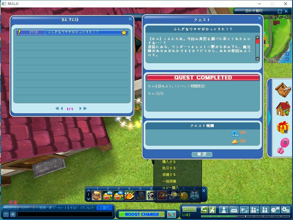 こちらが、最初に完了した、イベントのクエストです。
