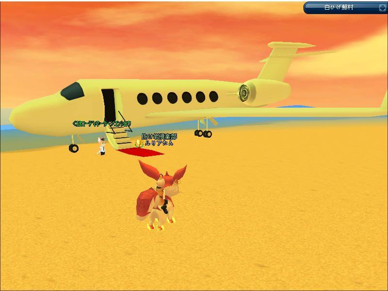 今日はメンテ後、新規実装釣りクエストをしたわ。 新NPC、ジェット機で砂浜に登場w