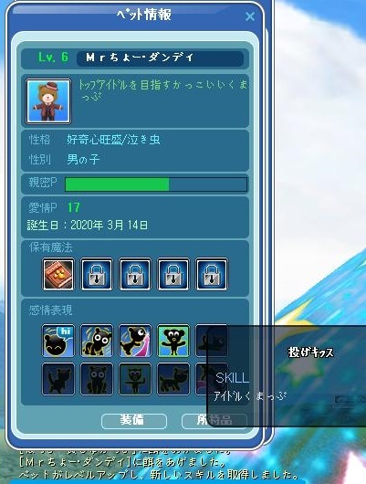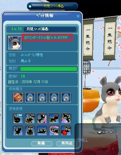 この子は4年前? 運営さんにいただいた子で、所持品が5個のまま増えないんで