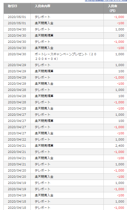 楽天競馬とボートレースでそれぞれ入金して一日2件分となり、一日1分くらいの作業でできるので中々のものよ。