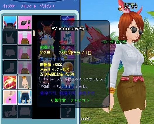 耐久1日だけど、「EV_パイロットサングラス_L」は属性がよかったです~