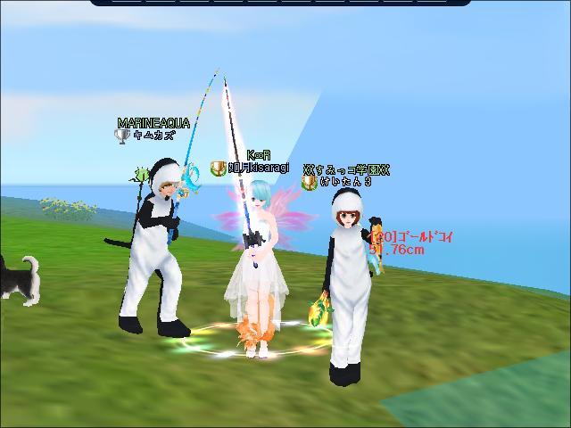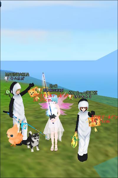かずが釣ってる横でポーズとったり、同じコス着てポーズきめたりして遊んだよーー(⌒▽⌒)アハハ!