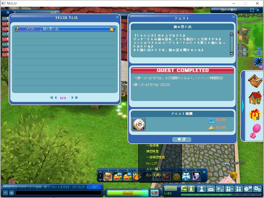 こちらが、最初に完了した、イベントのクエストです。