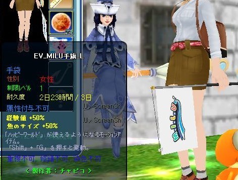 「EV_MILU手旗」は耐久3日ですが・・・属性は+50%です。