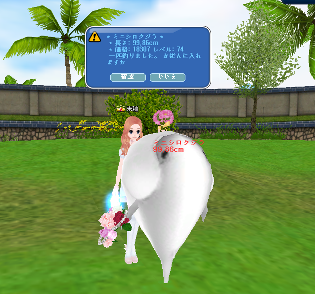 今日、初めてクジラが釣れました~v(。・・。)イエィッ♪ 音楽が変わって・・・(。´・ω・)ん?なんだろ? って思って見たら、まんまるクジラ☆.。.:*・°