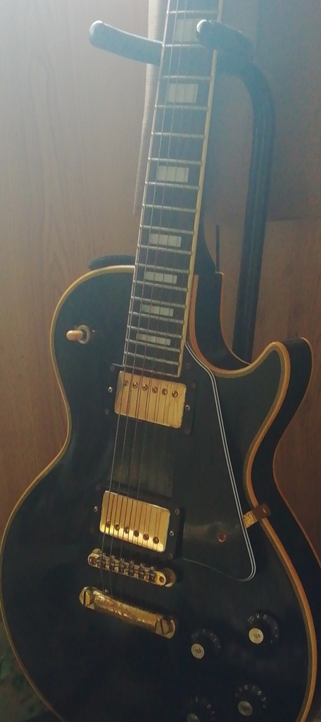 ちょっと前に買い替えたものですが、黒いエレキギター レスポールという形を現在使用中です☆ それをご紹介(´∀`) 逆光でうまく撮れてませんwww