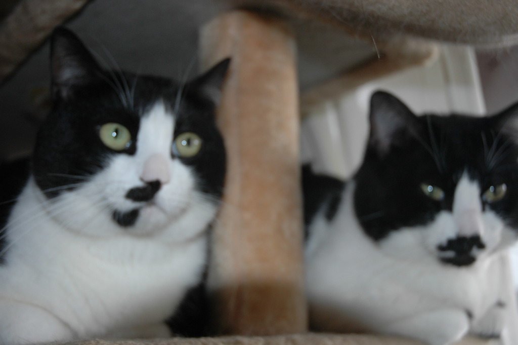 奥のほうのにゃんこはちっちゃな黒いマスクしてるみたいですね。