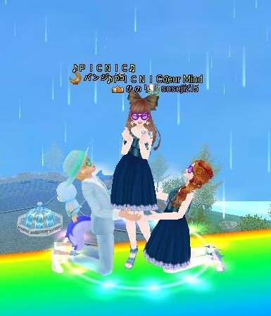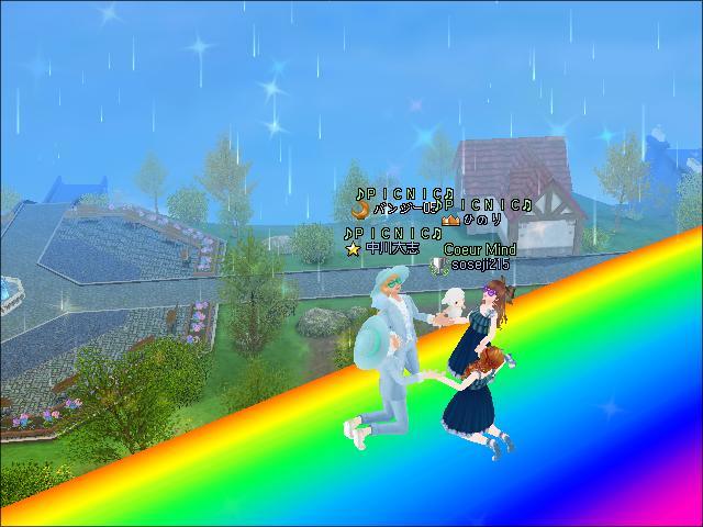 虹の上で「雨だ」!!