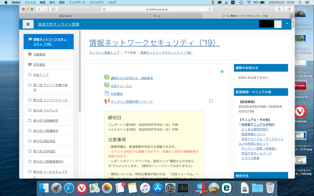 放送大学の講義1単位だけなのですが、全15回の講義の1/3をようやくクリアしてる程度で毎回の小テストとレポートがてんこ盛りです。