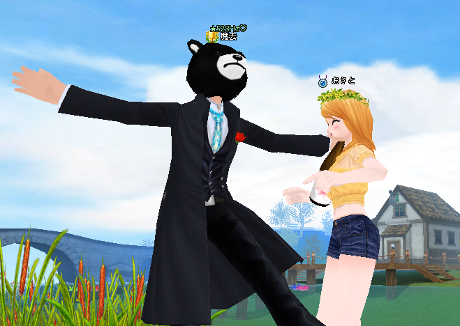 顔だけ熊になって、踊る!動きが素早すぎて。動画のほうが100倍面白いです!