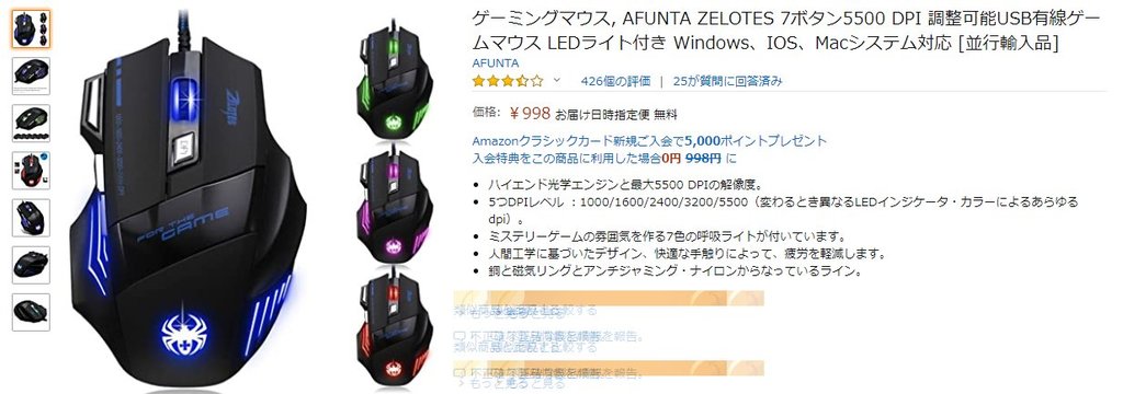 マウスはレーザーセンサーとアマゾンには書いてあったが