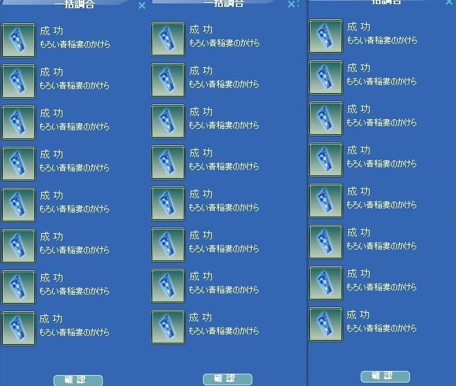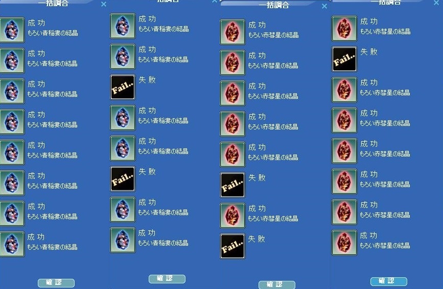 今日素材の調合に挑戦。 一括調合だwwww結果はこんな感じww