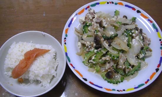 野菜たっぷりゴーヤチャンプル・たらこのせご飯