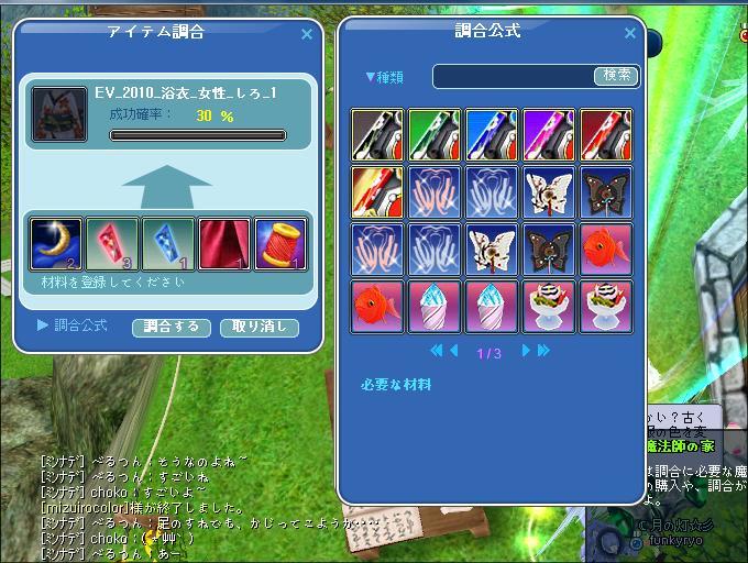 そして、もうすぐイベントも終了ということで、うちも掘りほりでようやく材料が集まったので、初めて浴衣の調合に挑戦してみました~♪