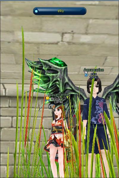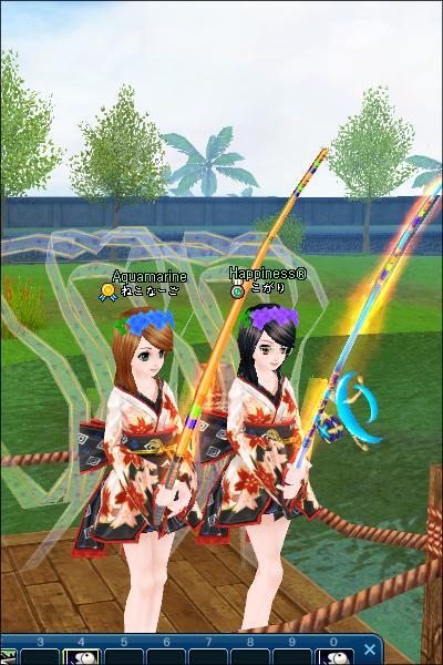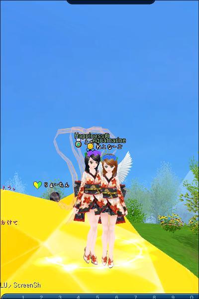 ↓これは、こがりさんが35Upした後駆けつけて、一緒に釣った時のSSです♪ たまたまでしたが、浴衣も羽も髪型もおソロで、なんだか姉妹みたいに似てますねo(*^▽^*)o~♪ レベルは全然違いますが。。。(>▽<;; アセアセ
