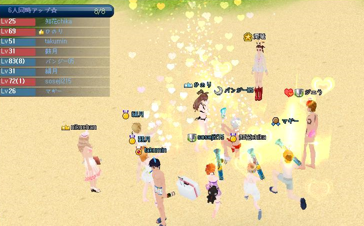 ❀+。バンさんLv83 ♡ ひのりさんLv69 ♡ タクさんLv51 ♡ 絹月さんLv31 ♡ 鼓月さんLv31 ♡ ちかLv25+。❀