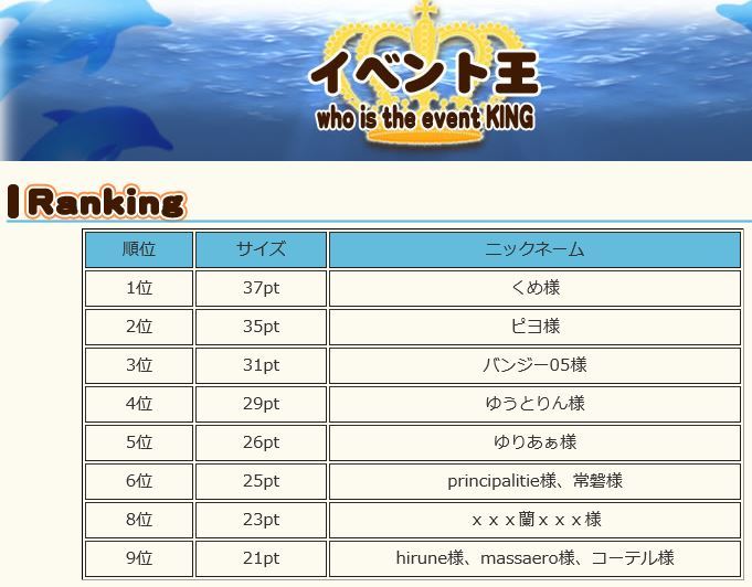 イベ王皆勤で9位入賞、お疲れ様でした&おめでとうございます!