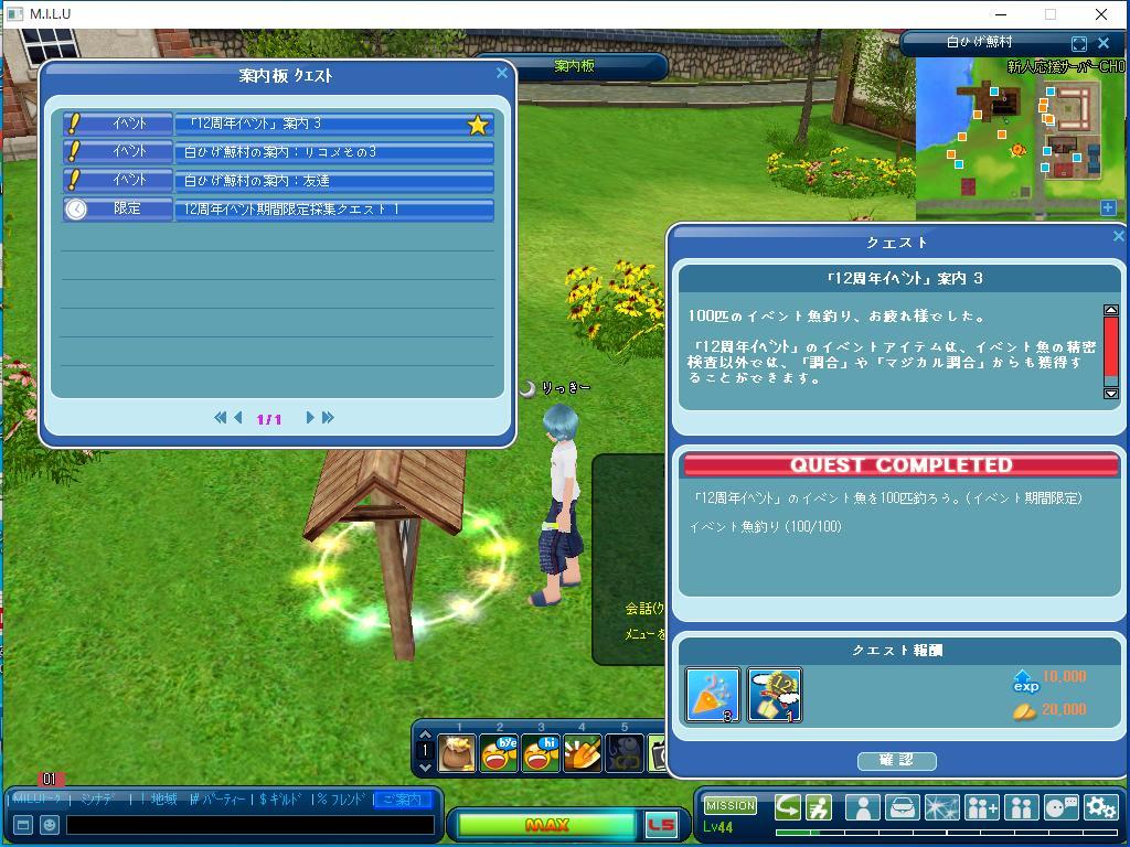 イベントのクエストは一つだけ完了しました。