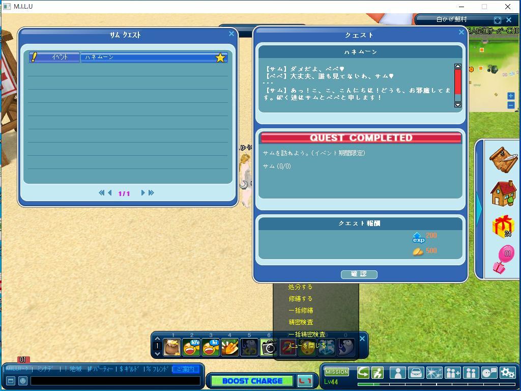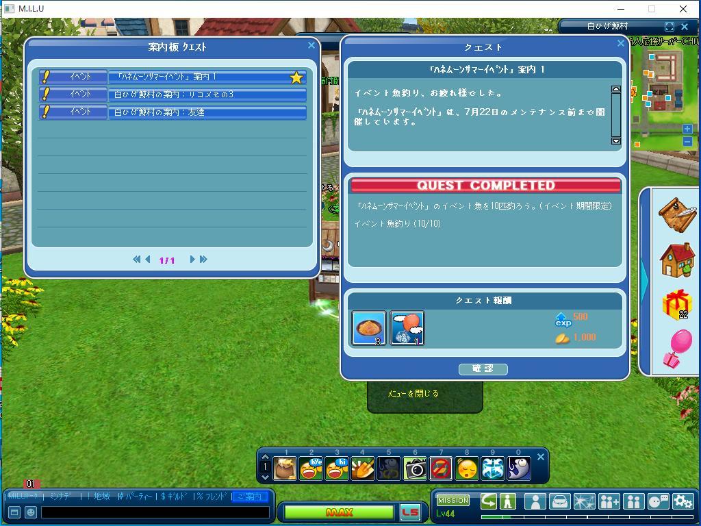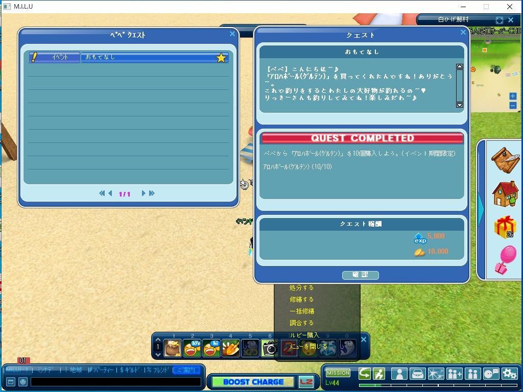 こちらは、最初に完了したイベントのクエストです。