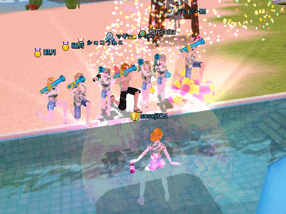 その後はみんなで、そーさんをプールに落とし~~~『そーさん、HAPPY BIRTHDAY♪』