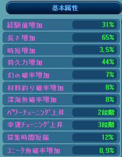 基本属性は、材料確率増加が1%増えて8%になりました^^