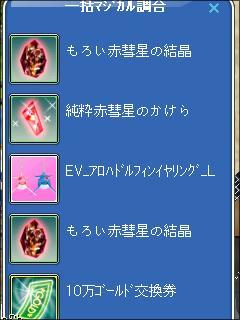 修繕可能で +12% , +12% はどうしても欲しくて、成功確率15%ですが・・・5回以内ならチャレンジしようと、材料5回分を準備してシャシャへ・・・女の子だから欲しいよね~♬