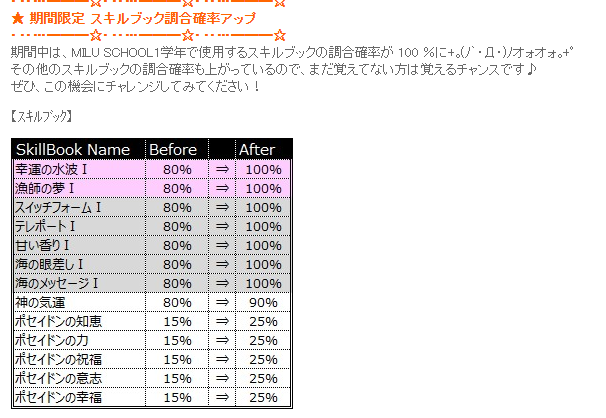 スキルブック調合成功率が期間限定で100%になってる☆