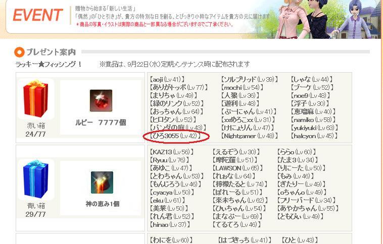 一度はなんでもいいから釣ってみたいと言っていた、『ラッキー★フィッシング』で、おもいもよらぬ赤い箱ゲットしました(●^o^●)