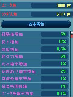 ユニーク魚3600匹達成