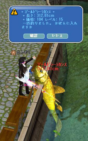 そして、倉庫を調べてる最中に 時の餌 も18個見つけたのでゴールドシーラ狙いで釣ってると、 何と2匹釣れました^^ (以前は50個使っても釣れなかったのにw)