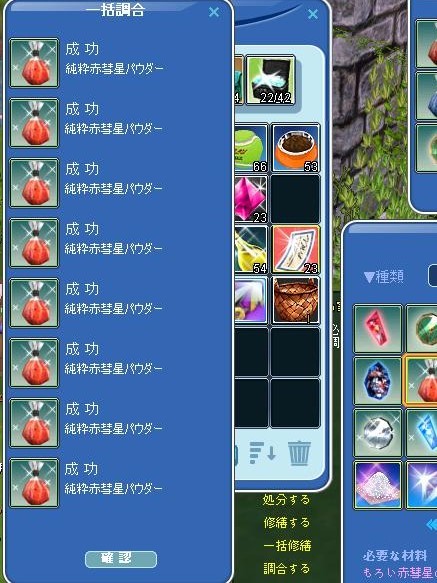 調合いっぱい成功おめでとうございまーす(〃^∇^)o_彡☆ |