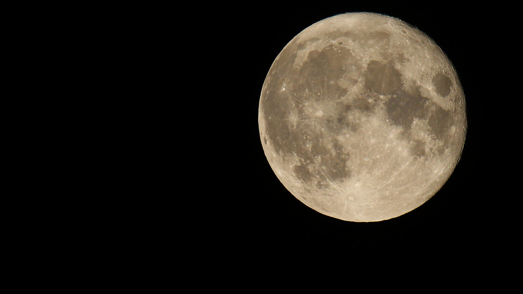 満月の翌日。前回の写真は満月なので月全体に光が当たり、陰影が無くのっぺりして見えてます。