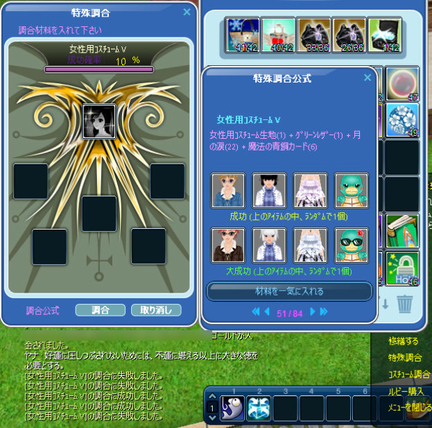 この後、調合欄確認したら通常コスが全く増えてなかったので