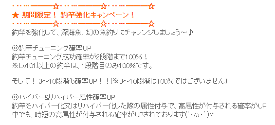 属性6-6へのチャレンジは、次回の「釣竿強化キャンペーン」まで待つ事にします。