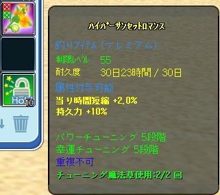気が早いですが、今週の「釣竿強化キャンペーン」を活用して、5-5までチューン終わっている55竿の封印を解いて、6段階までのチューンとハイパー化にチャレンジした日記です。