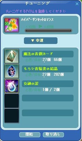 「女神の涙」2個をGET出来たので、「幸運チューニング」6段階目のチャレンジ再開です。