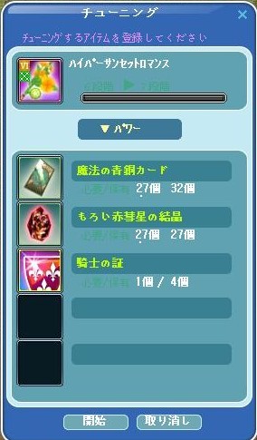 「女神の涙」はギルメンさんに「騎士の証」と交換して頂くことにして、先にハイパー属性の付け直しをする事にしました。