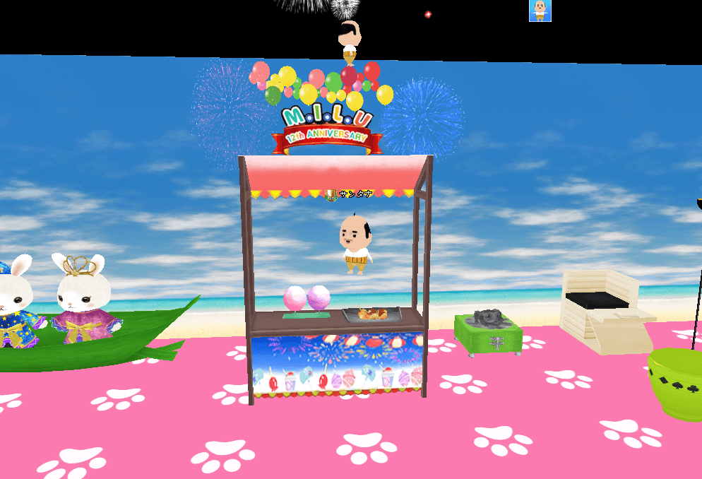 タコ焼きより花火が見たいと屋台の上に!