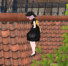 何やら屋根の上でストッキングの寄れを直してらっしゃいますなwww