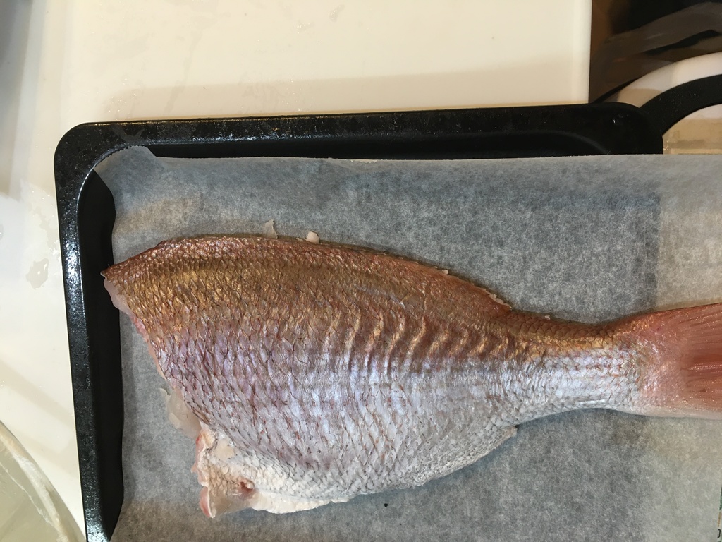 鱗が硬いので柳刃包丁が唸ります。