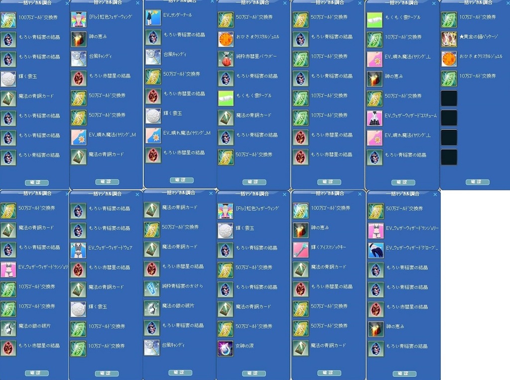 イベマジカル100回やってみた結果、見事ハズレばかりでした><楽しかったから良いや^^