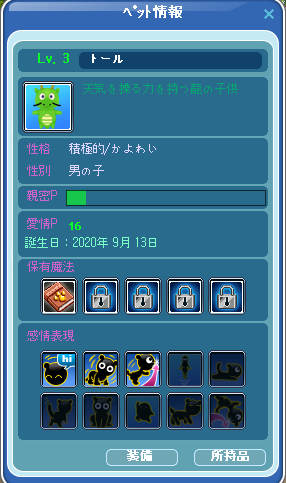 初期のペット以外の、ペットを手に入れました。(≧▽≦) ドラゴンなので、名前をトールにしました。ペットは育てたことが無いのでこれから自分事、以外も頑張りたいです。/)`・ω・´)