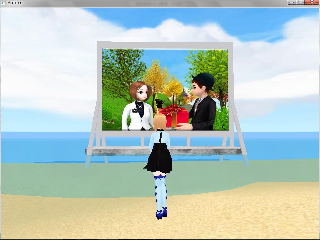 看板の前で・・・